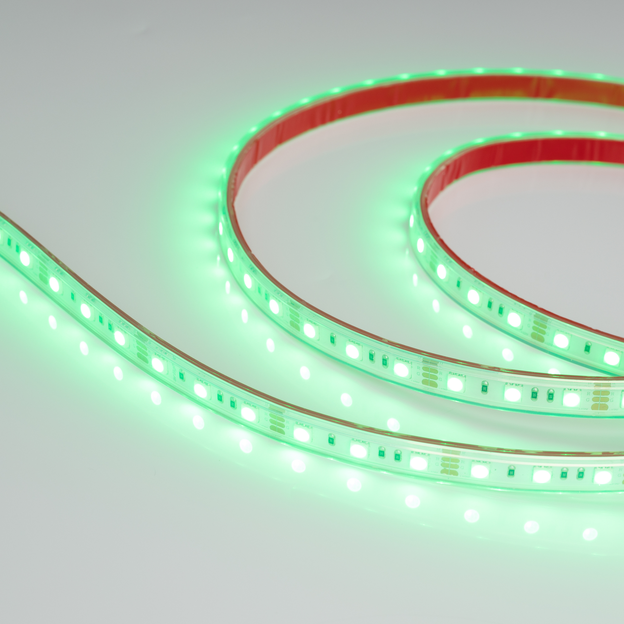 Герметичная лента IP66 (в силиконовой трубке), светодиоды smd 5060, 60шт/м (300шт на 5м), белая плата 10мм, скотч 3М. Цвет Мультицвет R/G/B. Питание 12V, мощность 14.4 Вт/м (72 Вт на 5м), угол 120°. Размеры 5000х13x5мм. Мин.отрезок 50мм, 3 светодиода. Цена за 1м.