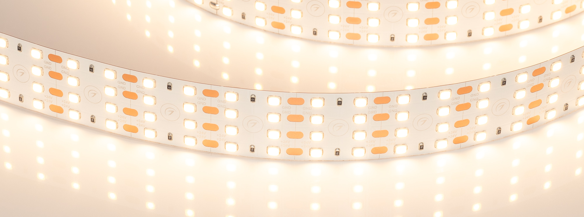 Светодиодная широкая лента UL серии A320. Светодиоды SMD 2835, 320 шт/м, белая плата шириной 24 мм, скотч 3M. Цвет ТЕПЛЫЙ 2700K, индекс цветопередачи CRI>90, угол 120°. Питание 24 В, мощность 35 Вт/м (105 Вт на 3 м). Размеры 3000x24x1.5 мм. Мин. отрезок 25 мм, 8 светодиодов. Цена за 1 м.