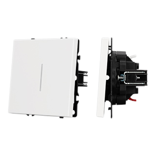 Механизм выключателя света клавишный на 1 пост 1 клавиша (непроходной). Цвет - белый, с Soft-Touch покрытием. Клавиша имеют активную LED подсветку - cинего свечения. Без фронтальной рамки. Уровень пылевлагозащиты IP20. Выключатель устанавливается в стандартный круглый подрозетник круглого сечения диаметром 60мм.