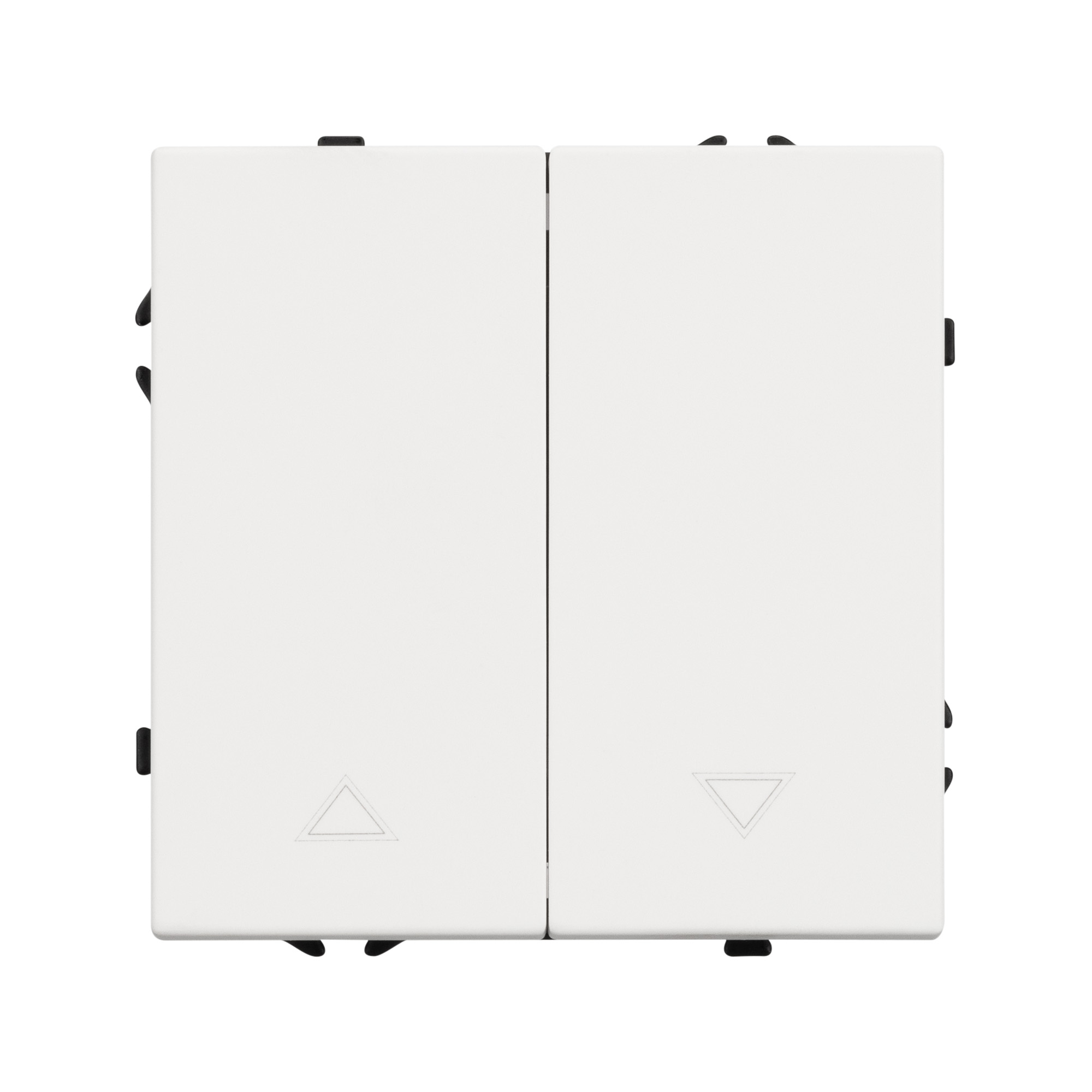 Механизм выключателя управления шторами на 1 пост 2 перекидные клавиши. Цвет - белый, с Soft-Touch покрытием. Без фронтальной рамки. Уровень пылевлагозащиты IP20. Выключатель устанавливается в стандартный круглый подрозетник круглого сечения диаметром 60мм.