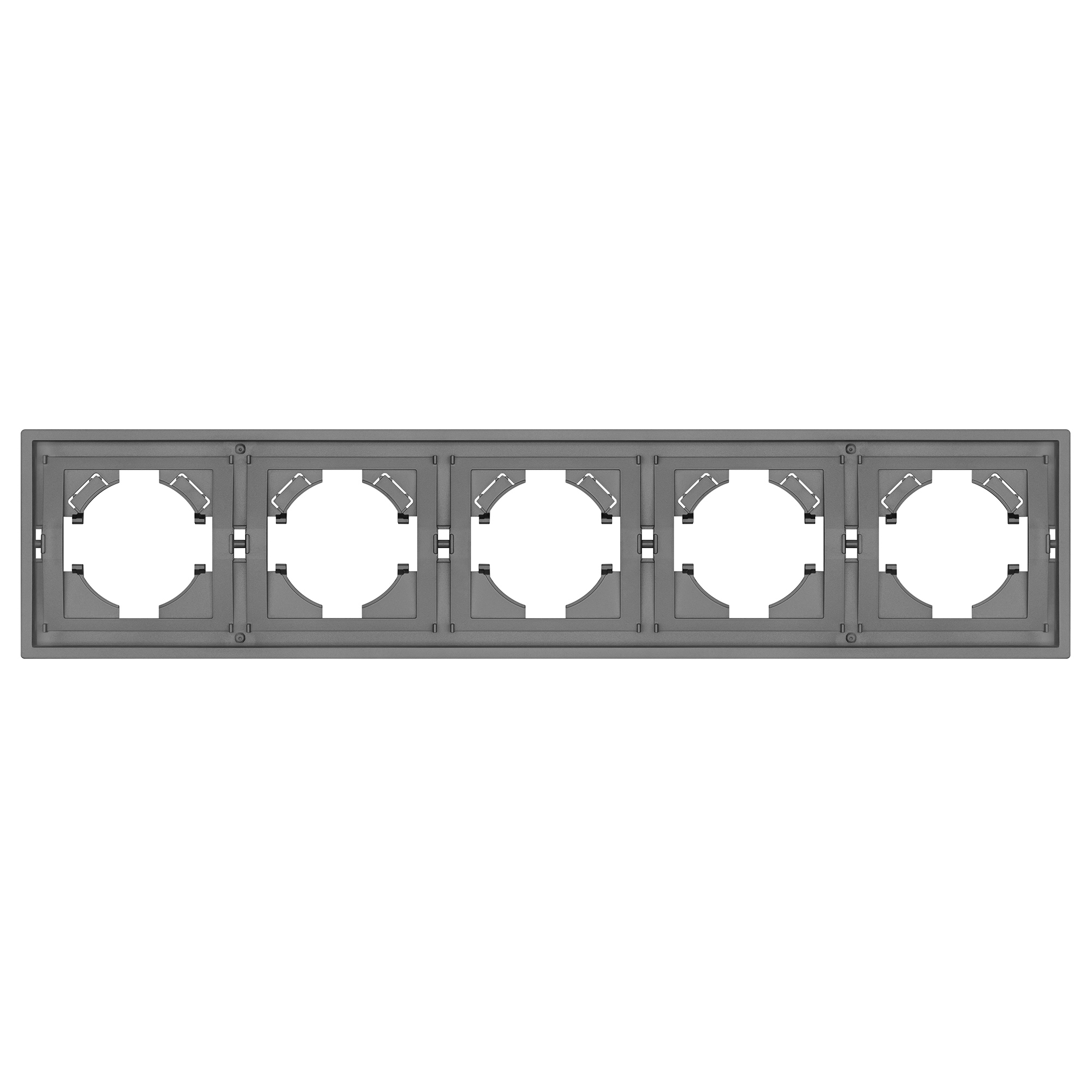 Рамка пластиковая на 5 постов, под встраиваемый механизм. Цвет - серый. Среднего уровня герметичности IP20. Ориентация монтажа горизонтальная.
